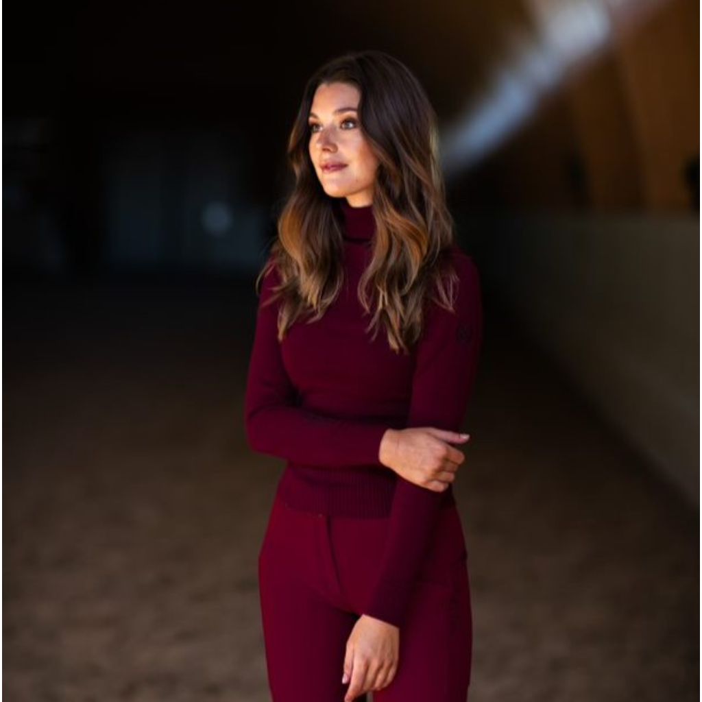 Equestrian Stockholm Knitted Polo Neck Jumper Bordeaux Horse In The Box